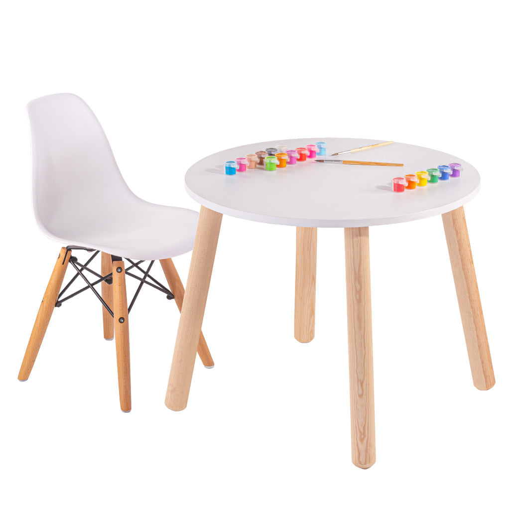Descripción: set infantil moderno Este set infantil incluye una mesa circular y una silla Berlín en tamaño adaptado para niñas y niños de entre 2 y 9 años. Ideal para acompañarlos mientras dibujan, hacen tareas, comen o disfrutan tiempo frente a la tablet. Su diseño moderno, limpio y funcional lo convierte en una excelente opción para crear un espacio infantil versátil y estéticamente armonioso. Fácil de armar y hecho con materiales resistentes pensados para el uso diario.