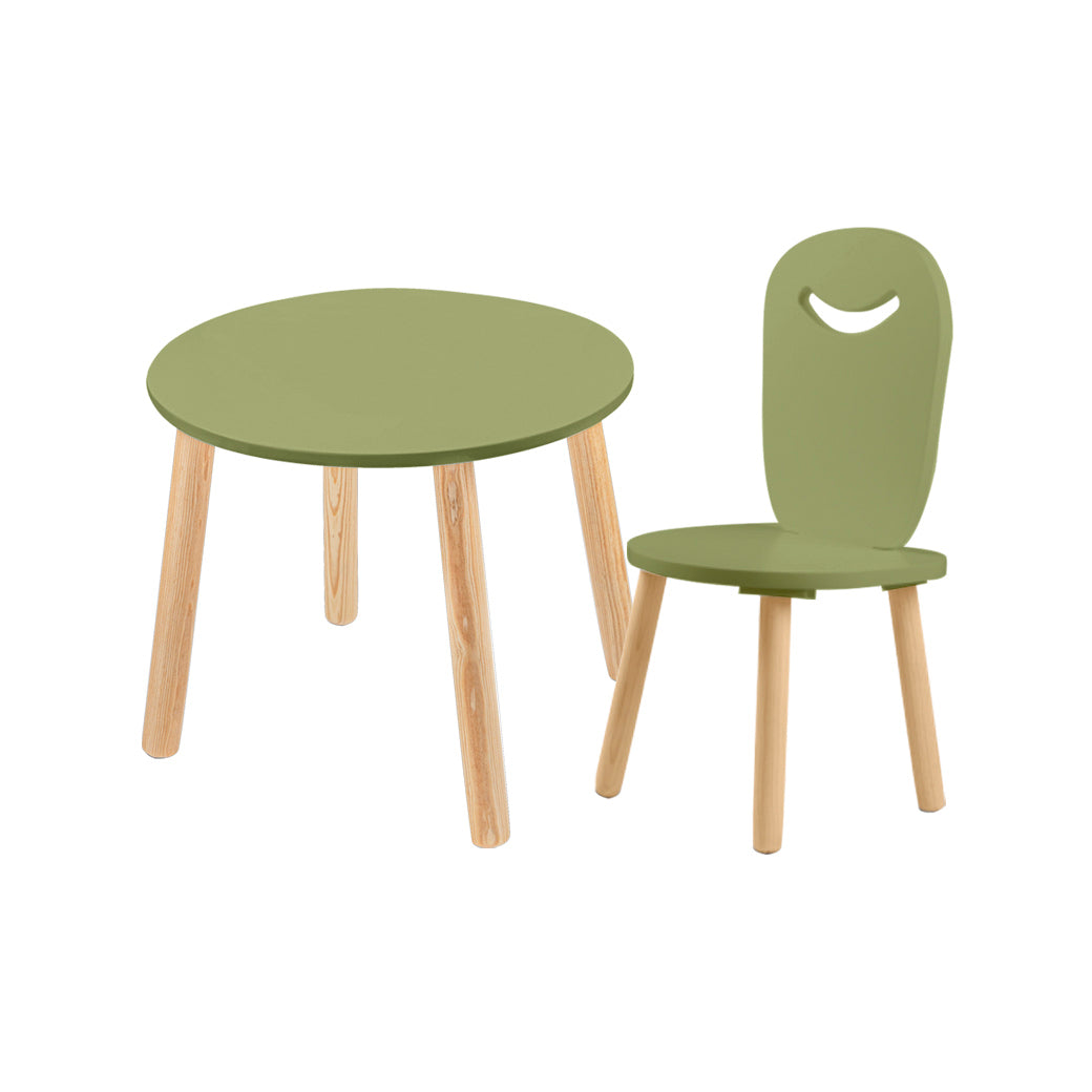 Con su diseño ergonómico y moderno, la silla Feliz proporciona soporte y comodidad, mientras que la mesa circular facilita la interacción y el juego libre.