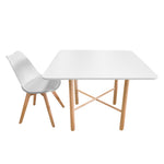 8 días para devolución Incluye servicio de armado en CDMX y área metropolitana Caben 4 sillas estándares Materiales:   Mesa: Melamina/Pino Pulido (sin Barniz)  Silla: ABS/Madera   Medidas: Mesa:• Largo:...