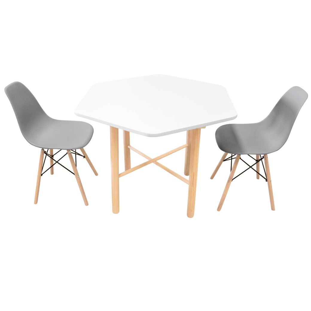 Este set de Mesa Hexagonal Cruzeta con 2 Sillas Berlín combina diseño moderno y funcionalidad, ideal para espacios contemporáneos. La mesa hexagonal con estructura cruzada ofrece estabilidad y resistencia, mientras que las sillas Berlín proporcionan comodidad y soporte ergonómico. Perfecto para salas, comedores, oficinas o espacios sociales, este set aporta estilo, practicidad y durabilidad. Fabricado con materiales de alta calidad, es una solución elegante para quienes buscan mobiliario sofisticado y versátil.