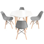 El Comedor Hexagonal Cruzeta con 4 Sillas Frankfurt combina diseño contemporáneo y funcionalidad, ideal para comedores, salas de reuniones o espacios sociales. La mesa hexagonal con estructura cruzada ofrece máxima estabilidad y resistencia, mientras que las sillas Frankfurt brindan comodidad y soporte ergonómico para largas reuniones o cenas. Fabricado con materiales duraderos y de alta calidad, este set aporta estilo, practicidad y elegancia a cualquier ambiente adulto, convirtiéndose en un punto focal moderno y sofisticado en tu hogar u oficina.