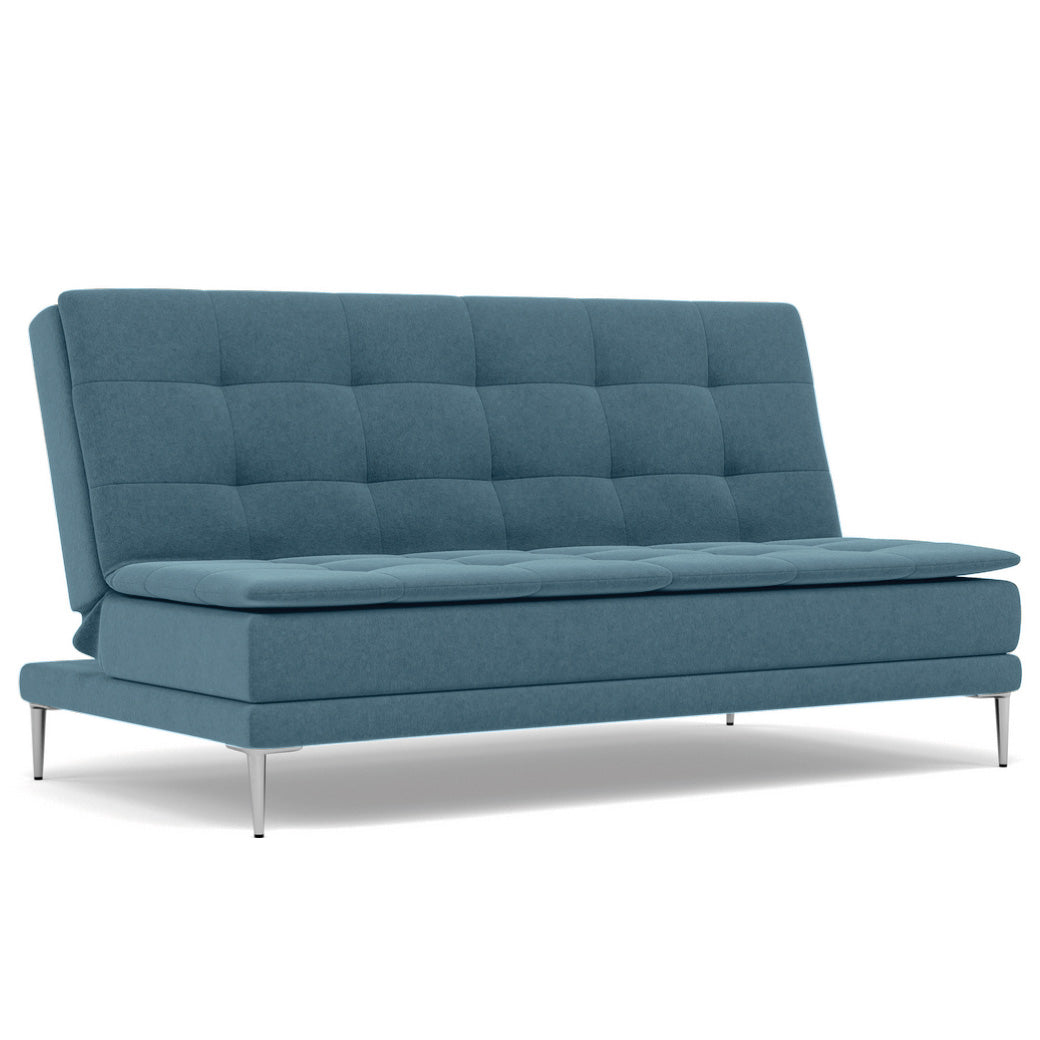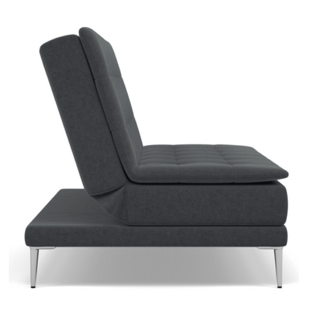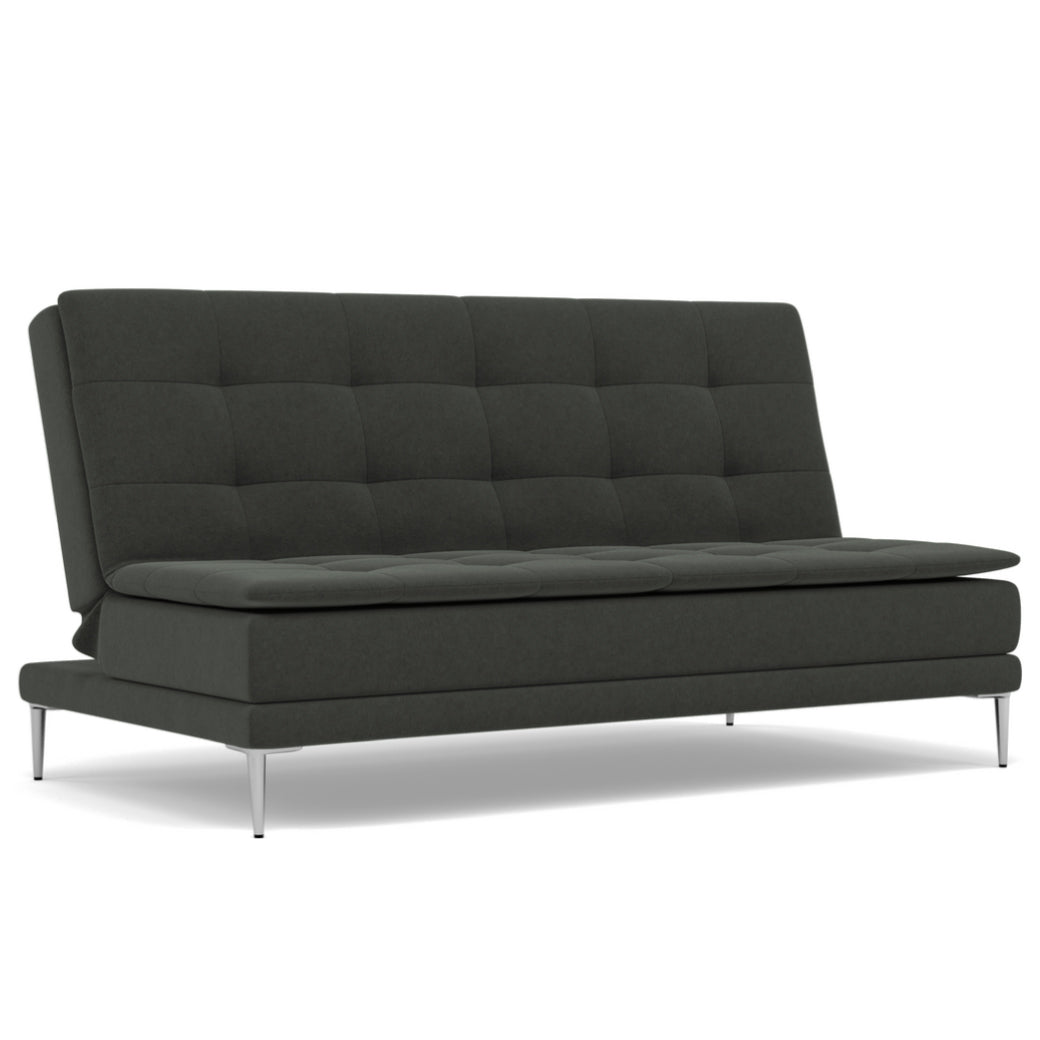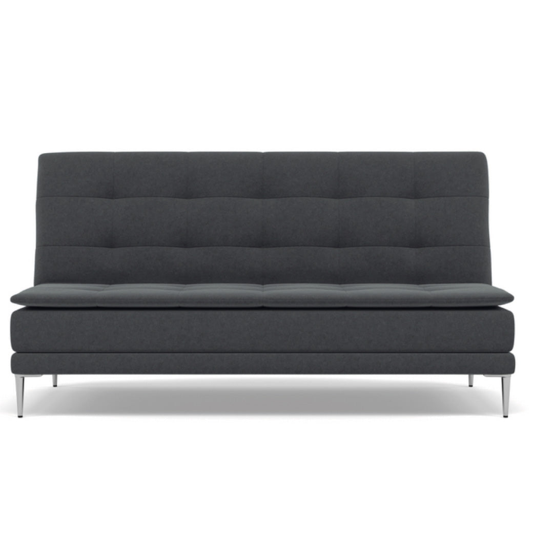 Sofá cama contemporáneo de 2 plazas, ideal para espacios multifuncionales como salas modernas, estudios o departamentos pequeños. Su diseño minimalista se realza con tapizado en tela de alta calidad —disponible en diversos colores— y detalles capitonados que añaden un toque sofisticado al ambiente. Gracias a su mecanismo reclinable tipo clic-clac, se transforma fácilmente en una cómoda cama auxiliar, perfecta para recibir visitas sin sacrificar estilo. Las patas metálicas con acabado cromado brindan estabilidad, durabilidad y un aire moderno y ligero. Detalles destacados: