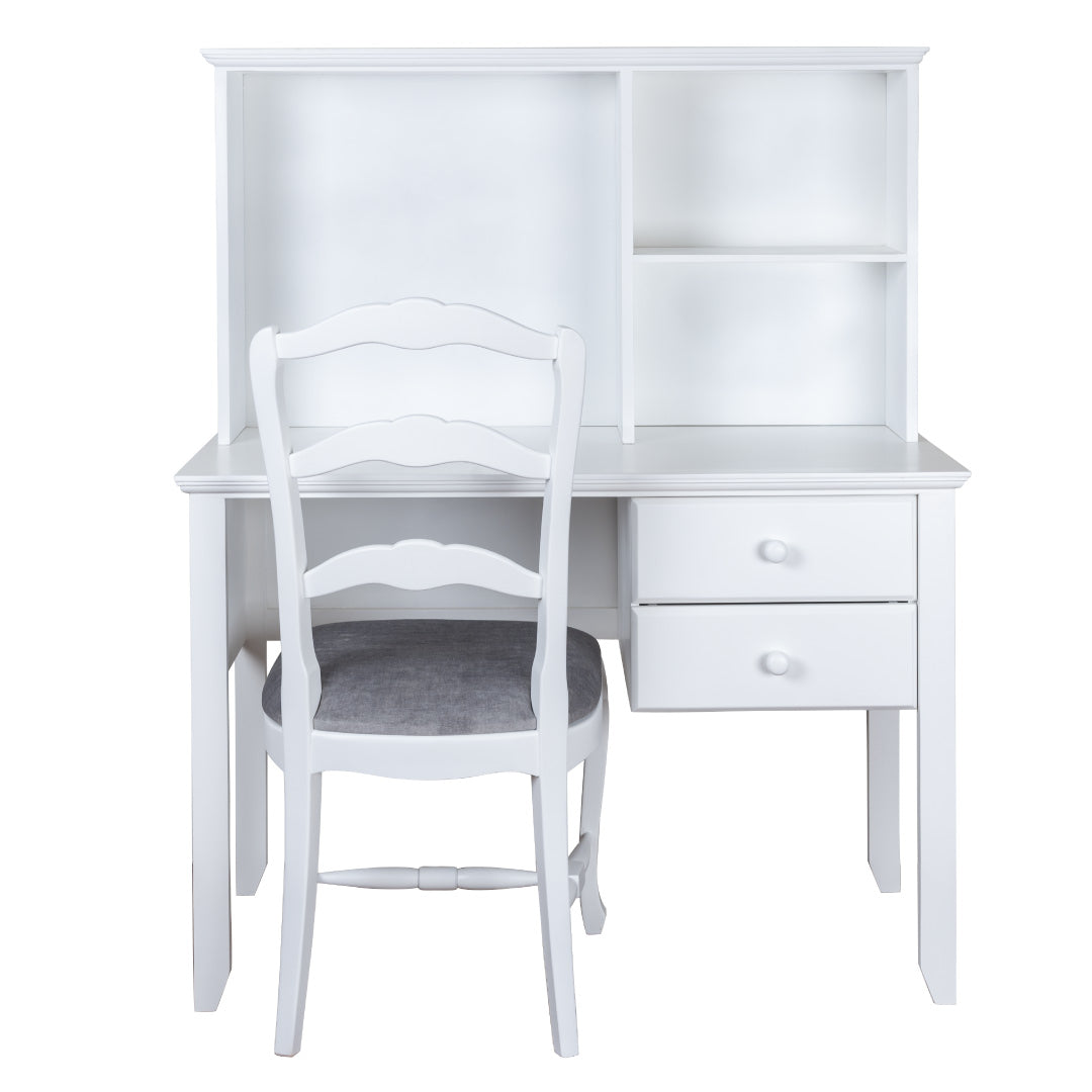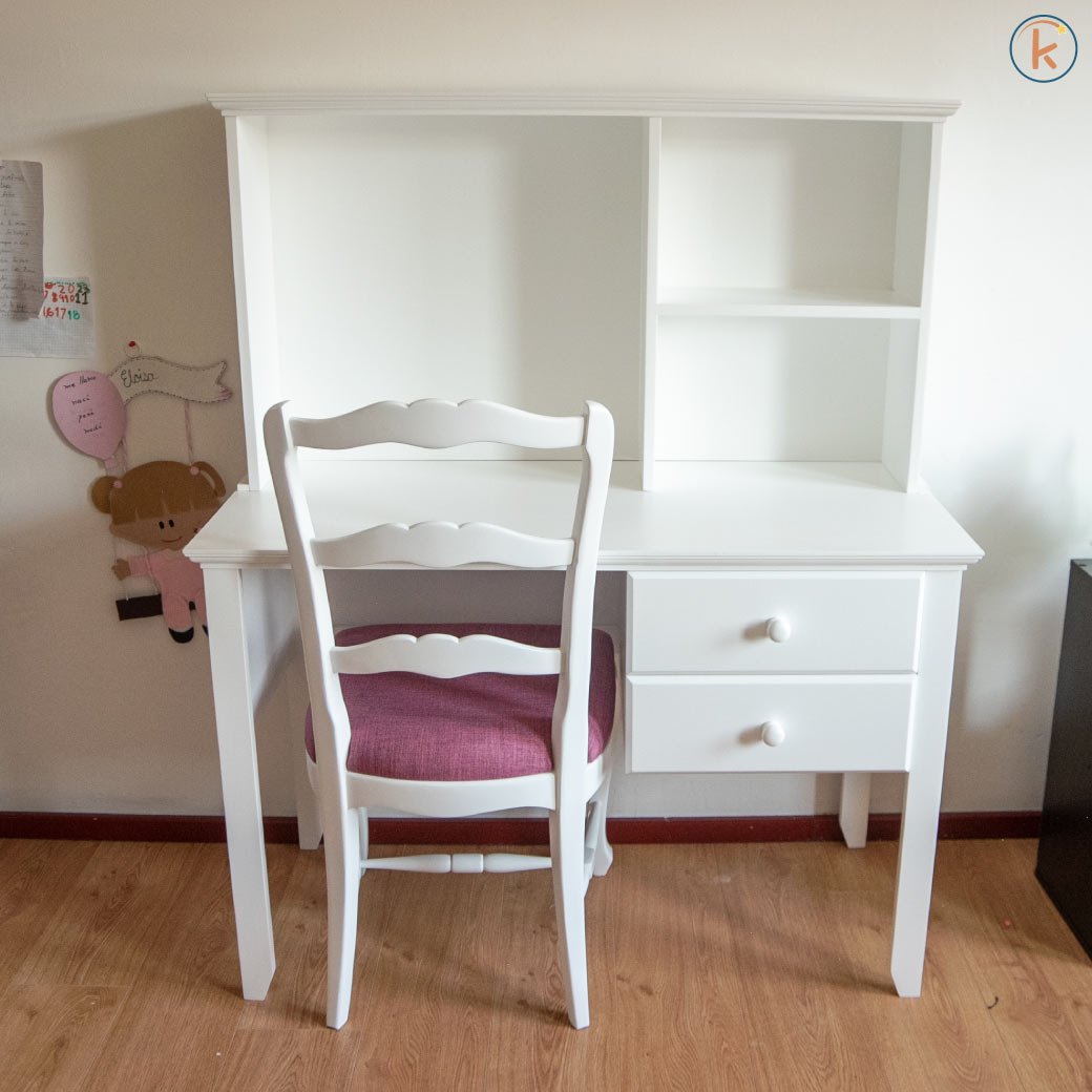 Escritorio: Pino/Mdf/ Poliuretano libre de tóxicos Silla: Madera de Aliso/Poliuretano/Tela/hule espuma |