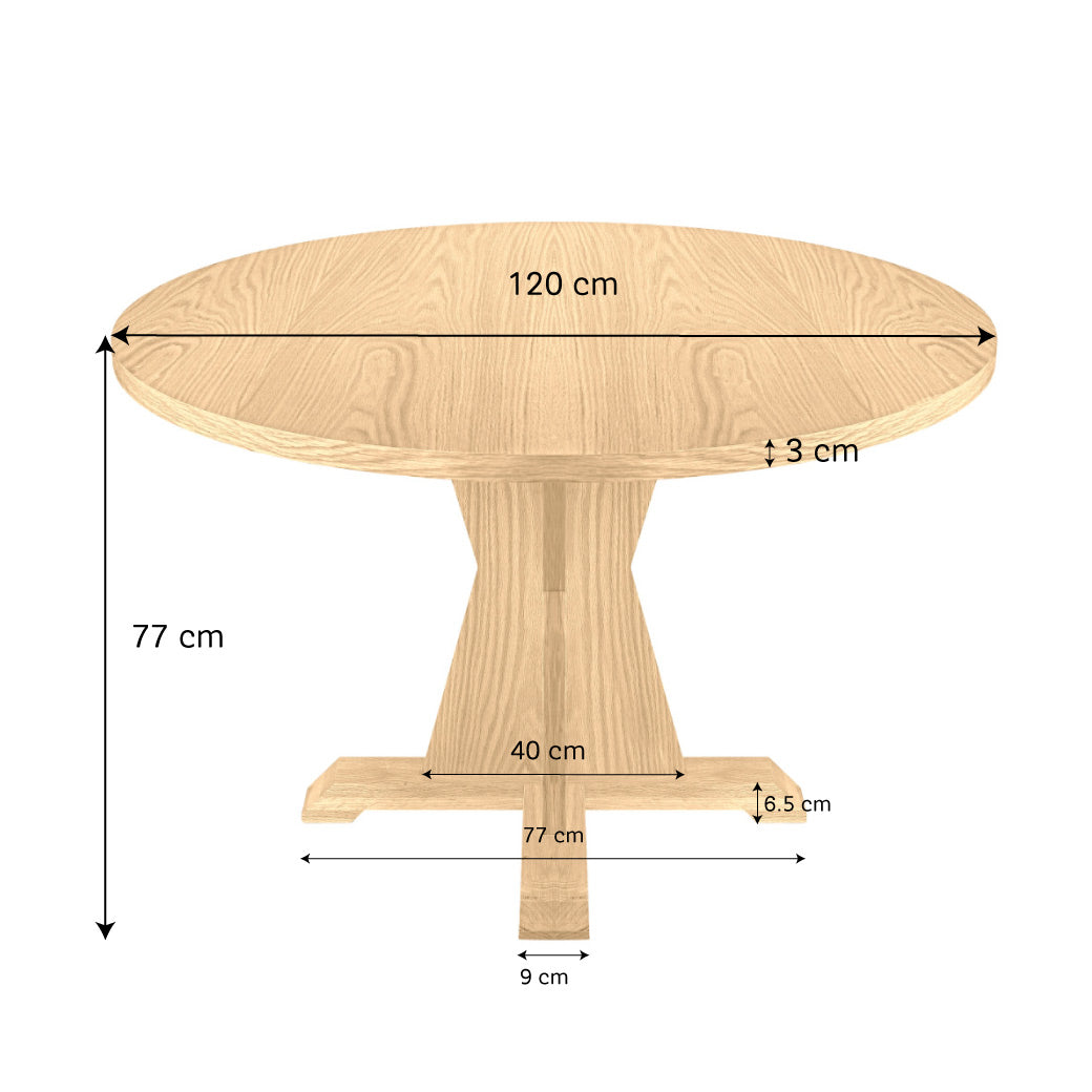 La Mesa de Encino Natural con Diametro de 120 cm es una excelente opción para quienes buscan un comedor con estilo, calidad y un diseño que realmente aporte calidez al hogar. Su cubierta tiene un espesor de 3 cm, lo que la hace diferente de otras, además de brindar una sensación sólida y estable desde el primer uso, ideal para desayunos diarios, comidas en familia o reuniones con invitados. Gracias a su forma circular, pueden sentarse 4 personas de manera cómoda y fluida, favoreciendo la convivencia sin esquinas incómodas. La base central ofrece gran estabilidad y un diseño moderno que se integra fácilmente con diferentes estilos de sillas. El acabado natural y la veta visible de la madera le dan un toque artesanal que hace que cada pieza se vea única. Es una mesa duradera, práctica y fácil de combinar, pensada para espacios que buscan buen gusto sin complicaciones. |