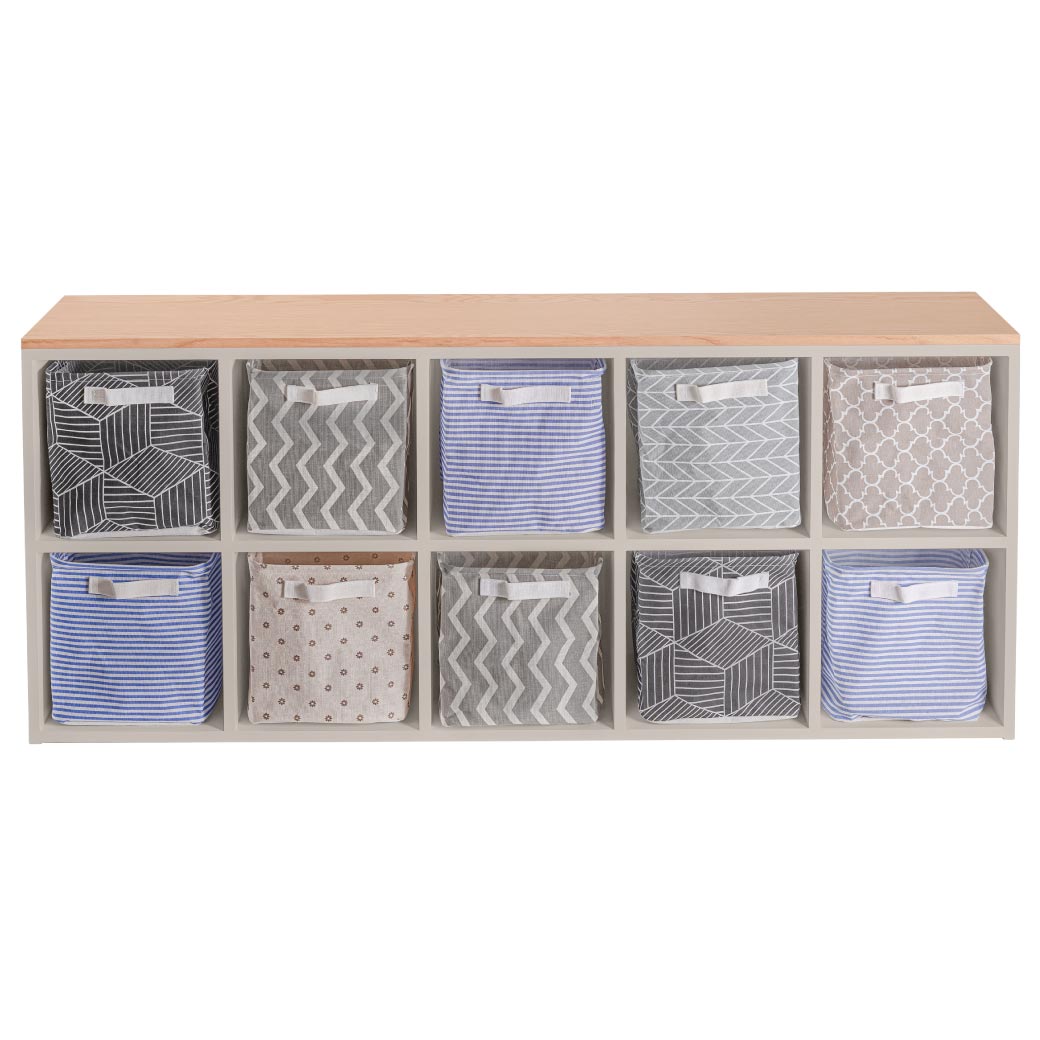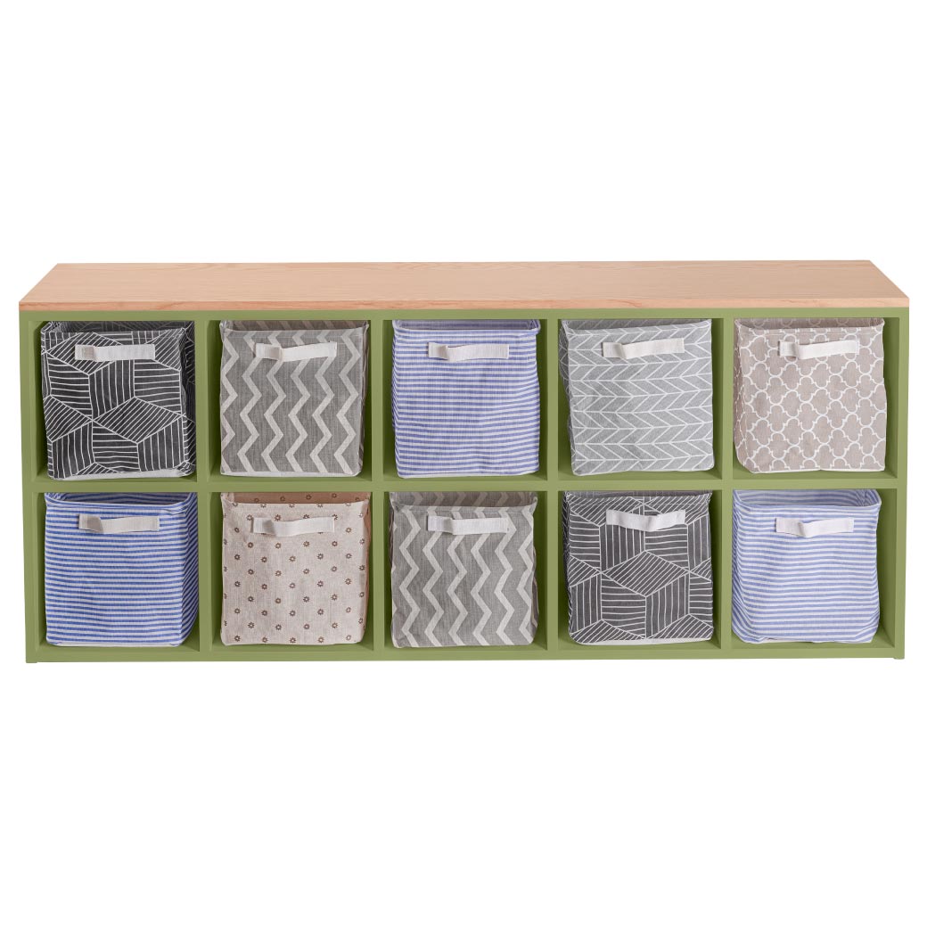 Cuenta con estructura de madera cubierta en encino y está disponible en 7 colores para hacer match con cualquier decoración infantil. Perfecta para usar con canastas (no incluidas), su diseño funcional y estético transforma cualquier área infantil en un espacio ordenado, cálido y lleno de estilo.