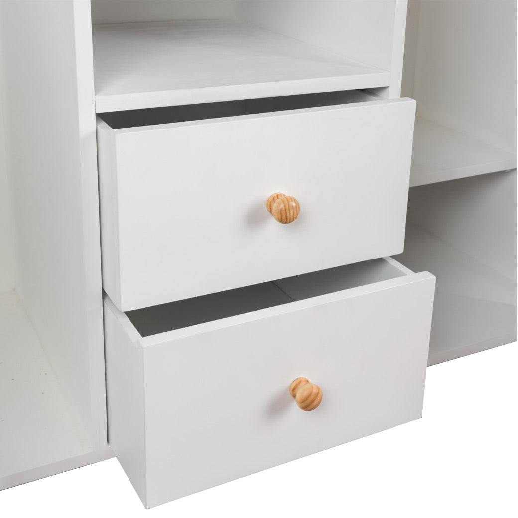 El ropero doble es ideal para niños y niñas pequeños. Con un diseño moderno y funcional, cuenta con 2 cajones, 3 repisas y 2 percheros que facilitan la organización de su ropa, zapatos y accesorios. Este mueble infantil es perfecto para crear un espacio ordenado con estilo en cualquier recámara. Disponible en varios colores para que elijas el que mejor combine con la decoración del cuarto de tus pequeños. Diseñado a su altura, fomenta su independencia y les permite aprender a organizar desde pequeños. Ideal para habitaciones Montessori o espacios modernos. |