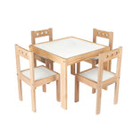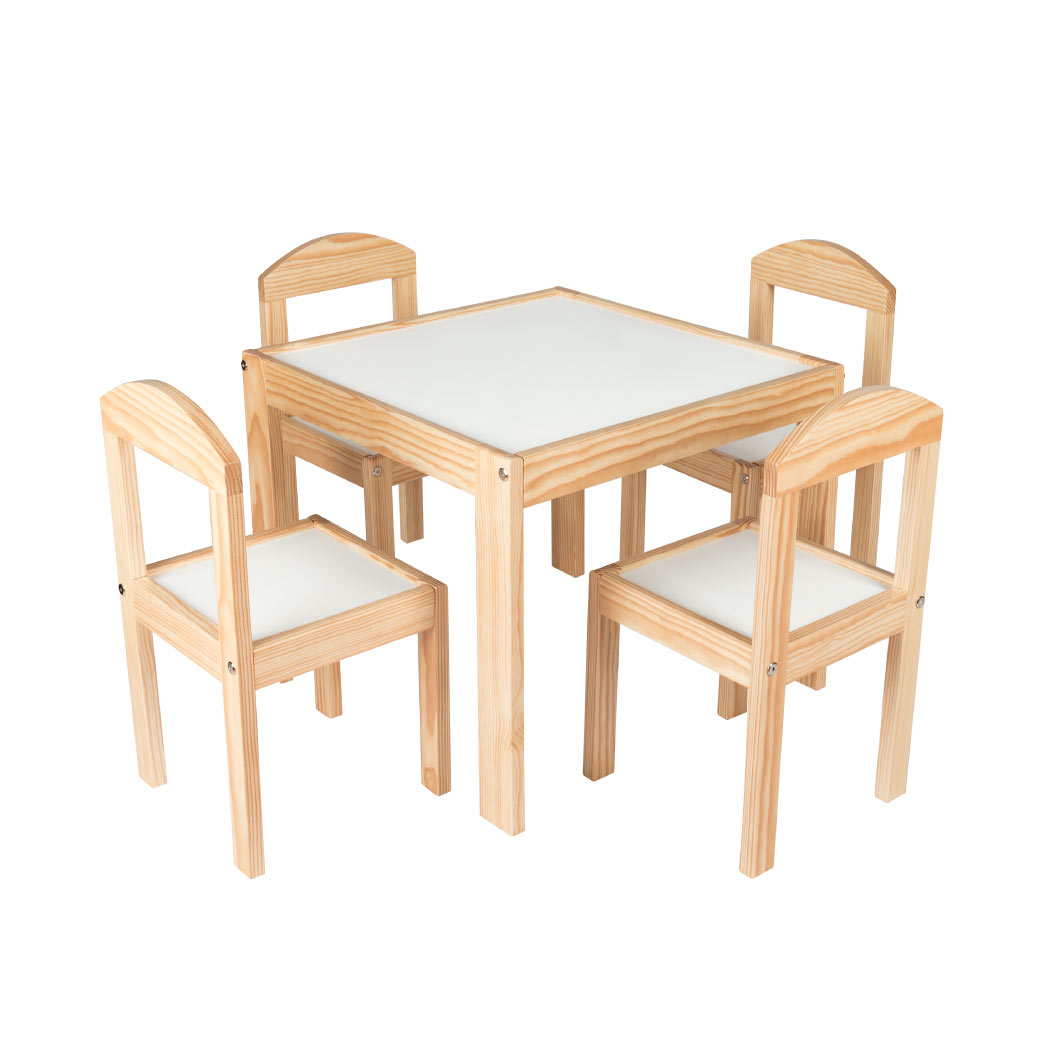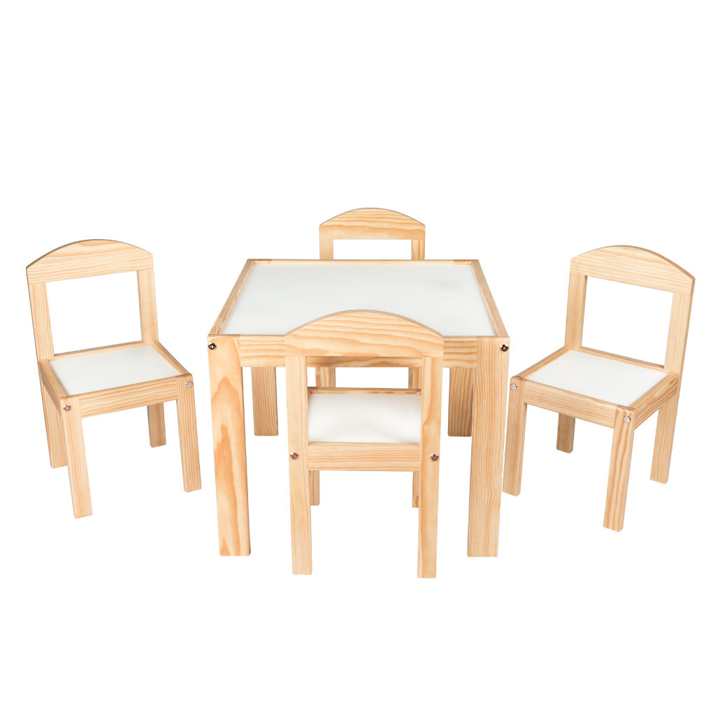 El comedor infantil de estilo escandinavo de Fabric, compuesto por una mesa y cuatro sillas finamente barnizadas, aporta calidez y armonía a cualquier recámara infantil. Su diseño minimalista y funcional está pensado para niñas y niños de 2 a 9 años, ofreciendo un espacio perfecto para hacer la tarea, dibujar, jugar o compartir momentos especiales. Fabricado en madera de alta calidad, este set combina estética y resistencia, siendo una opción segura y duradera para el día a día.