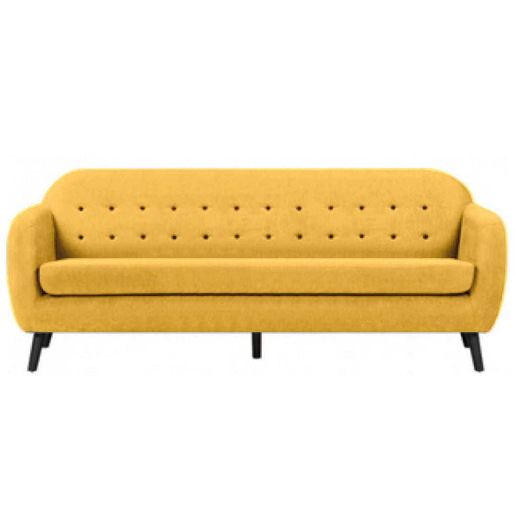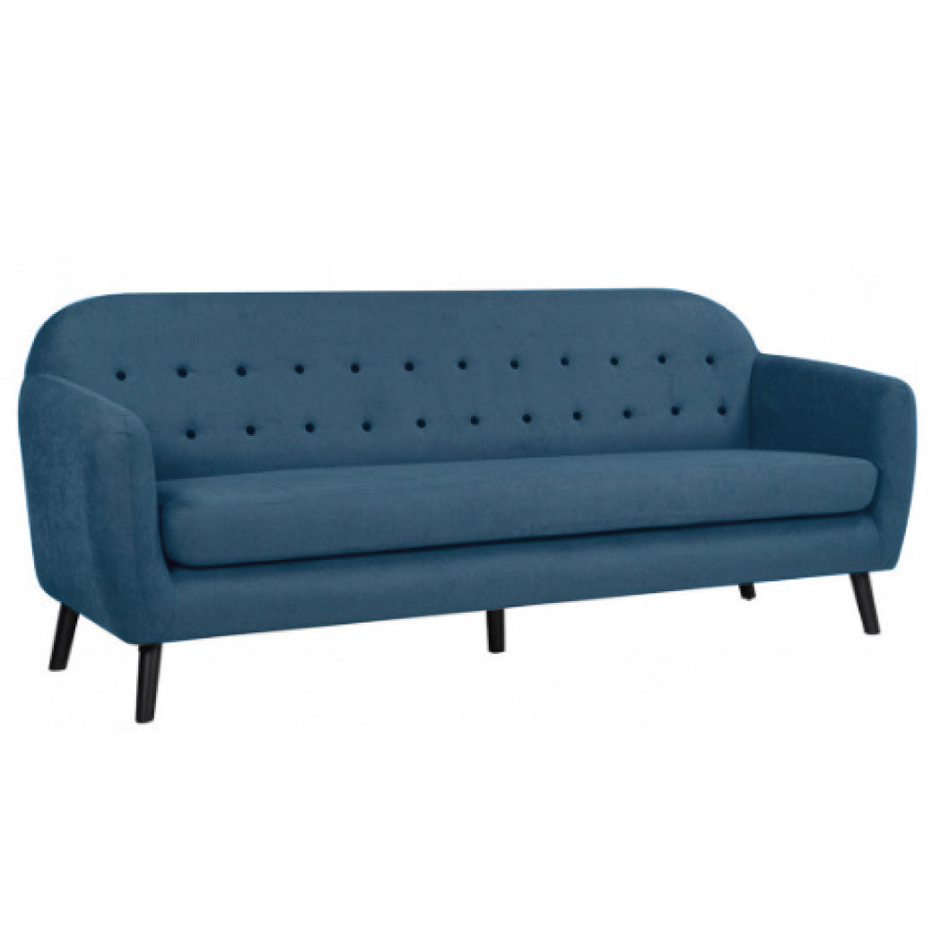 Sofá moderno de estilo refinado, diseñado para brindar comodidad y sofisticación en cualquier ambiente. Su silueta fluida y proporciones bien equilibradas lo convierten en una pieza versátil, ideal tanto para espacios residenciales como comerciales. El respaldo amplio proporciona soporte ergonómico, mientras que el asiento acolchado garantiza una experiencia de descanso confortable. Los brazos estilizados mantienen una línea visual limpia y moderna. La base se apoya sobre patas robustas que aseguran estabilidad y añaden un detalle decorativo elegante. Características destacadas: