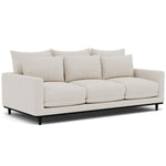 Sofá contemporáneo de diseño refinado, ideal para añadir estilo y confort a cualquier ambiente. Su estructura presenta formas geométricas limpias con esquinas suavemente redondeadas, creando un equilibrio entre modernidad y calidez. Los brazos y el respaldo están generosamente acolchados para ofrecer una experiencia de descanso superior. El tapizado incluye costuras decorativas en forma de cuadros, que aportan textura visual y una sensación acogedora. Su base se apoya sobre patas de madera inclinadas hacia afuera, brindando firmeza y un aire escandinavo a su estética general. Características clave: