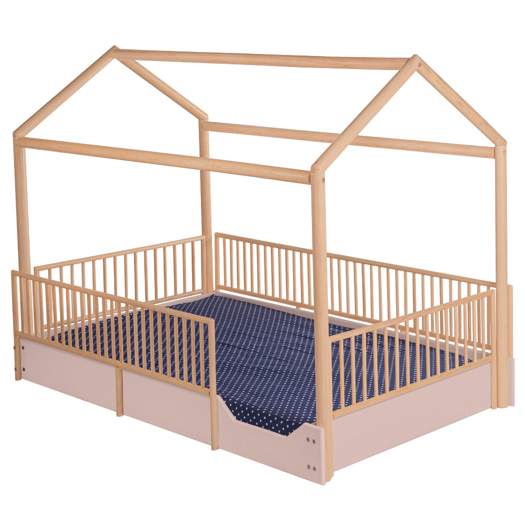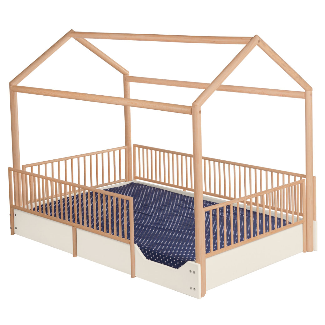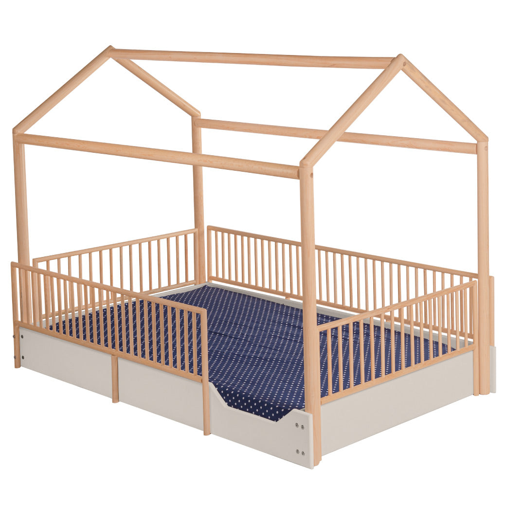Cama Casa Montessori de Madera con Barandales Removibles