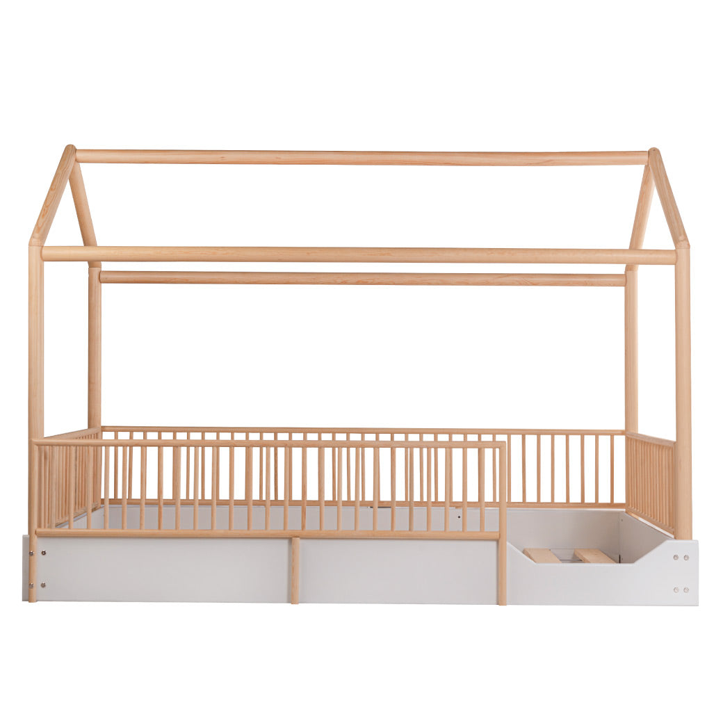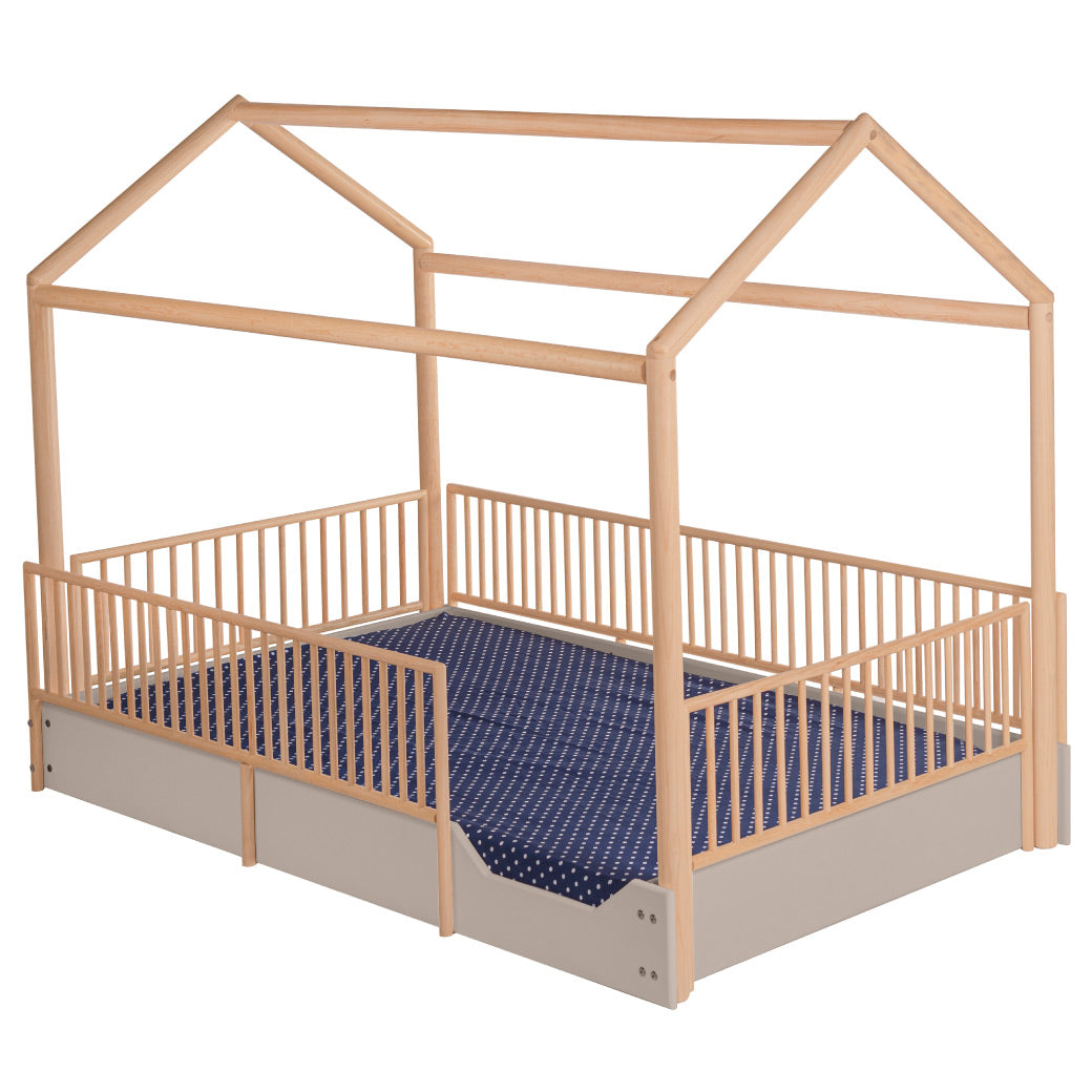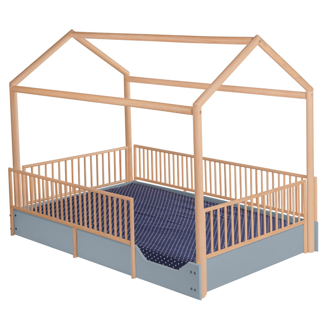 Cama Casa Montessori de Madera con Barandales Removibles