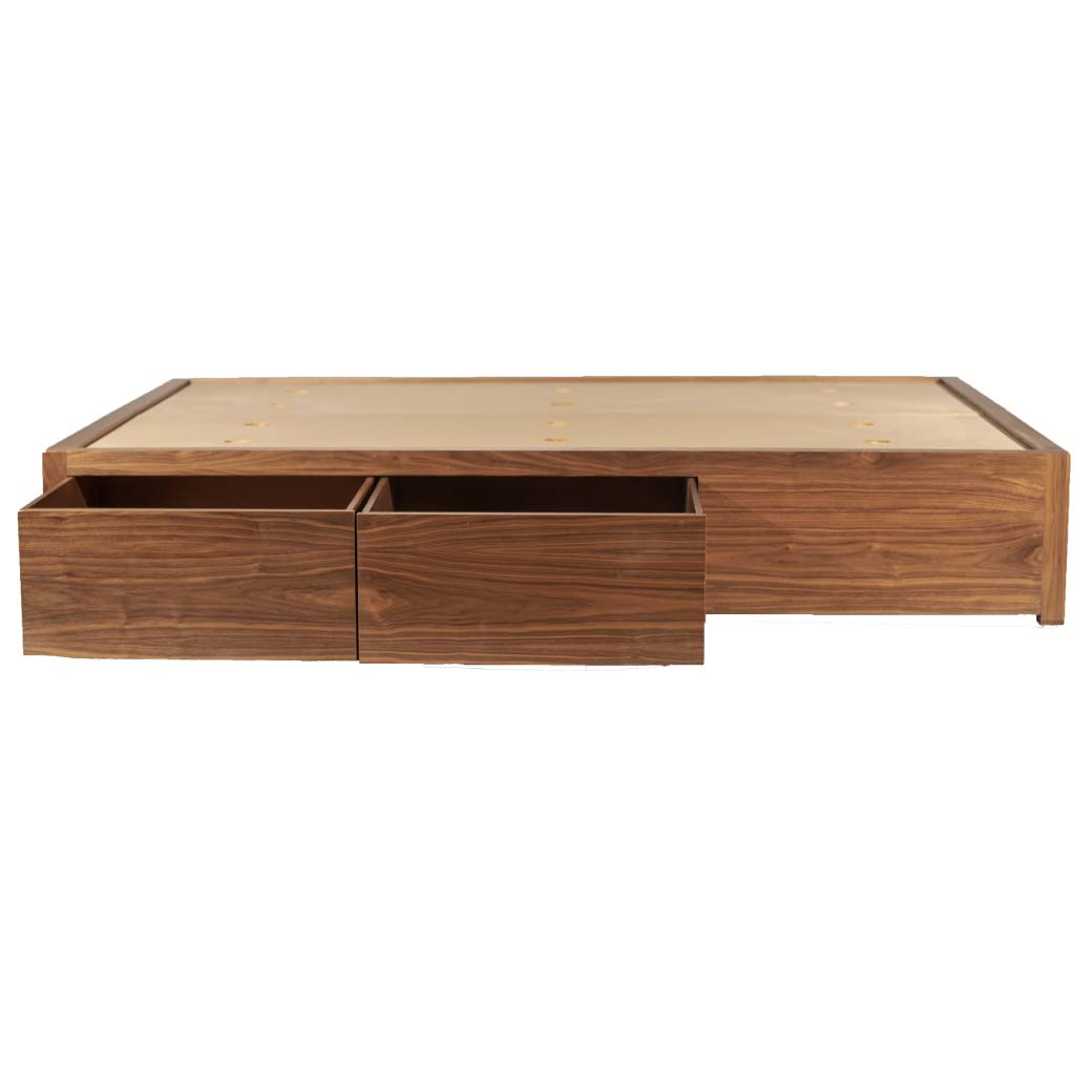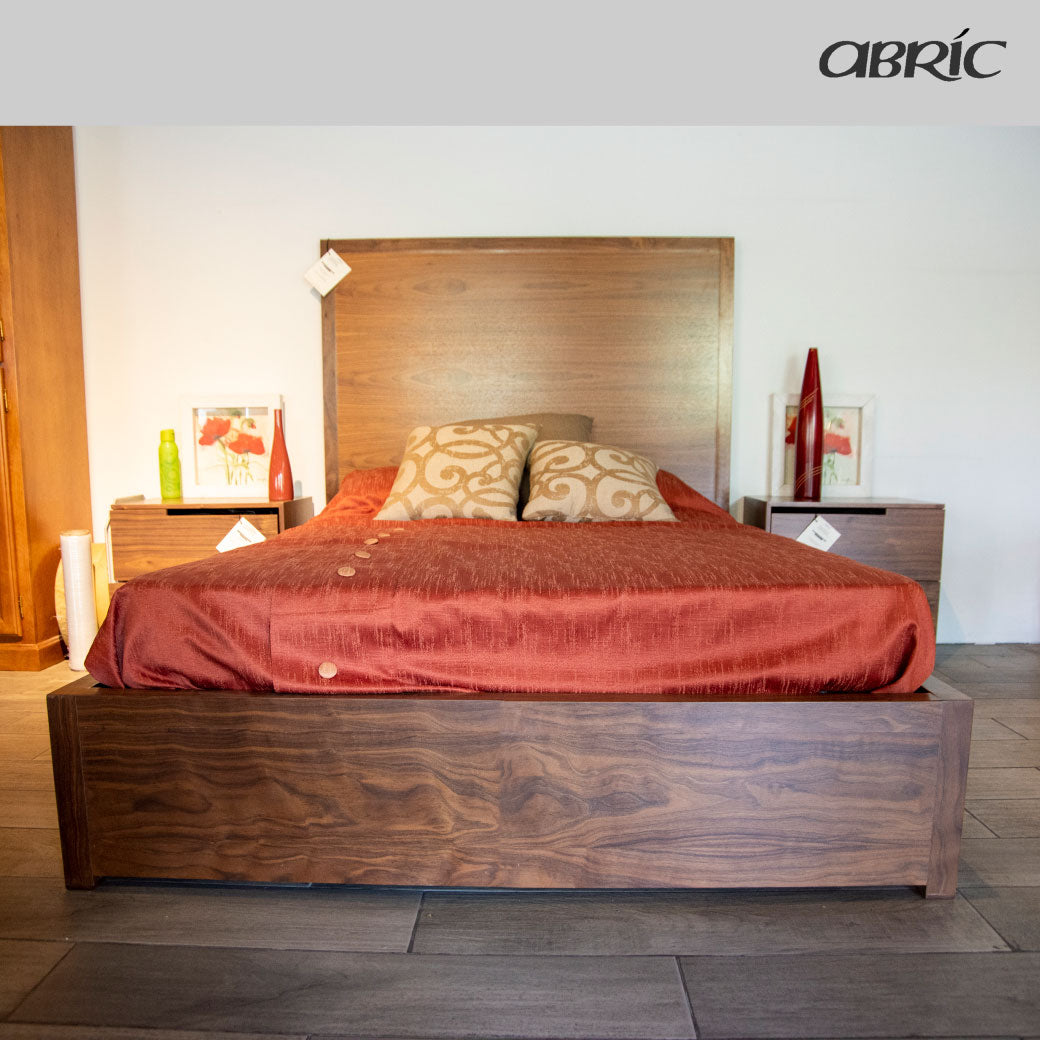 Cama de madera en acabado nogal con cajones