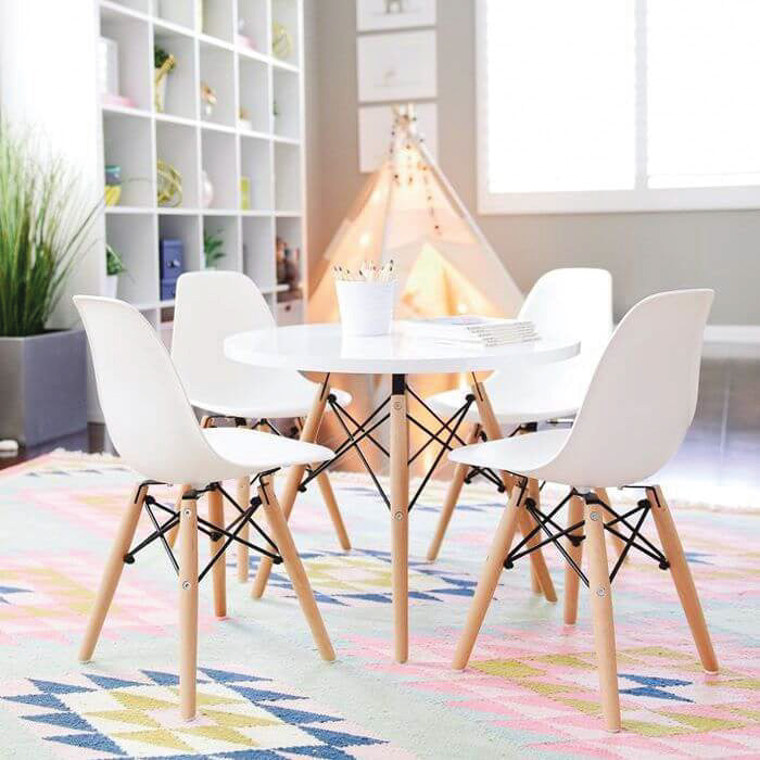8 días para devolución Diseñadores Ray y Charles Eames Incluye el paquete 4 Sillas + 1 Mesa Edad Recomendada:  De 2 a 9 años Medidas: *Silla: • Largo: 41 cm •...