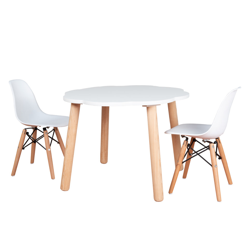 Comedor Infantil de Madera con Mesa en Forma de Nube y Sillas Eames