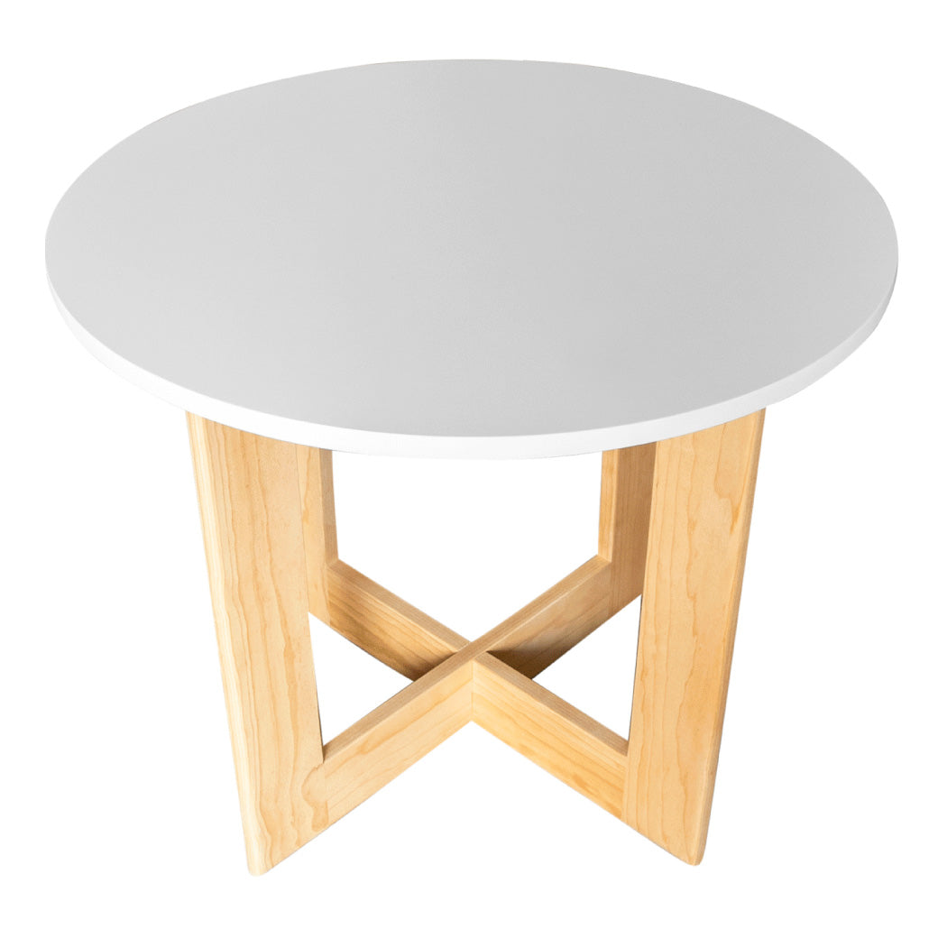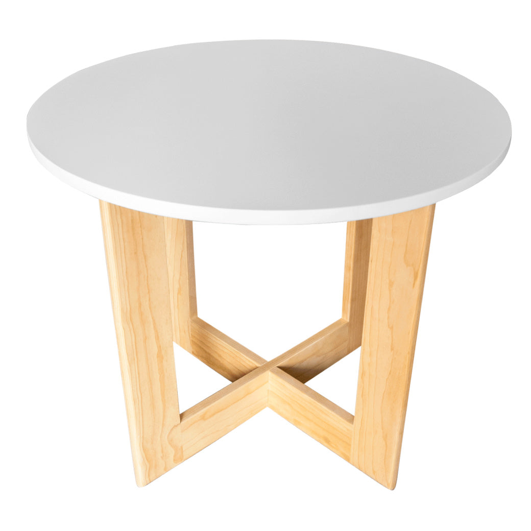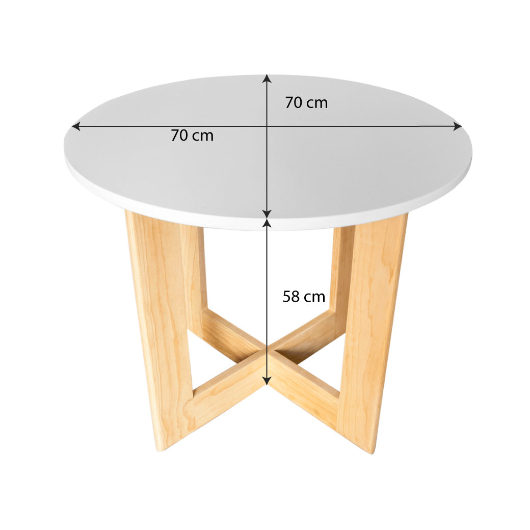 Mesa de Centro Circular con Base Cruzada de Madera (70 cm x 70 cm x 58 cm)